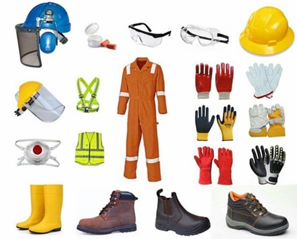 معدات سلامة للعاملين تشمل خوذات، نظارات، وأحذية أمان لضمان بيئة عمل آمنة واحترافية.